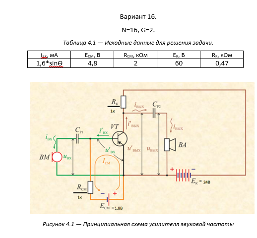Главная » Учебные материалы » Электроника » Курсовые работы » УрГУПС » 5 семестр » Вариант 16 » Графическое построение токов и напряжений усилителя звуковой частоты