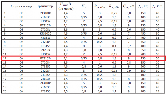 Курсовая работа: Линейный однокаскадный усилитель сигнала звуковой частоты вариант 12