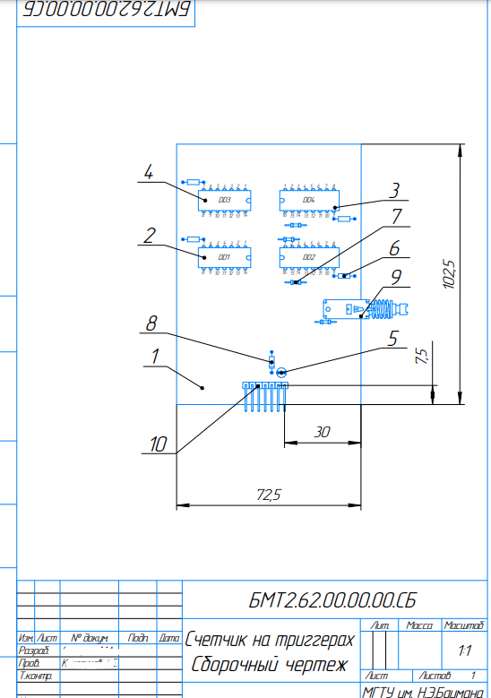 Проектирование последовательного устройства – счетчика с произвольным порядком счета. Разработка принципиальной схемы, перечня элементов для нее, сборочного чертежа и спецификации, а также электрической разводки платы счетчика.