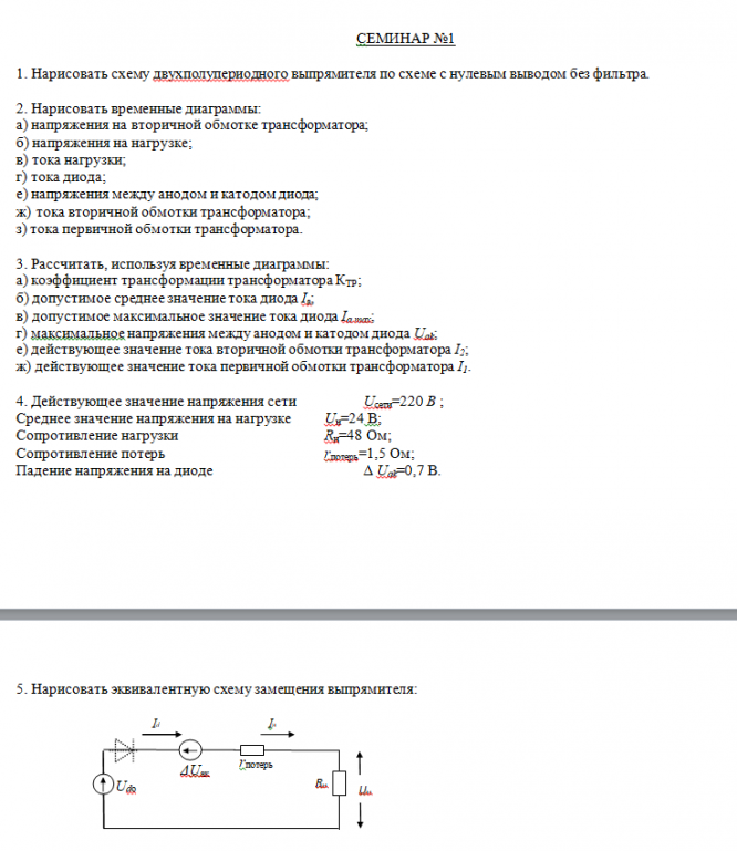 Для студентов ИДДО НИУ «МЭИ» по предмету ЭлектроникаКМ-2. Выпрямители. Письменная работа (Электроника семинары) - Семинар 1КМ-2. Выпрямители. Письменная работа (Электроника семинары) - Семинар 1