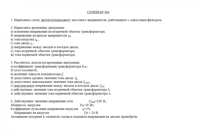 ДЗ КМ-2: КМ-2. Выпрямители. Письменная работа (Электроника семинары) - Семинар 4 вариант 4