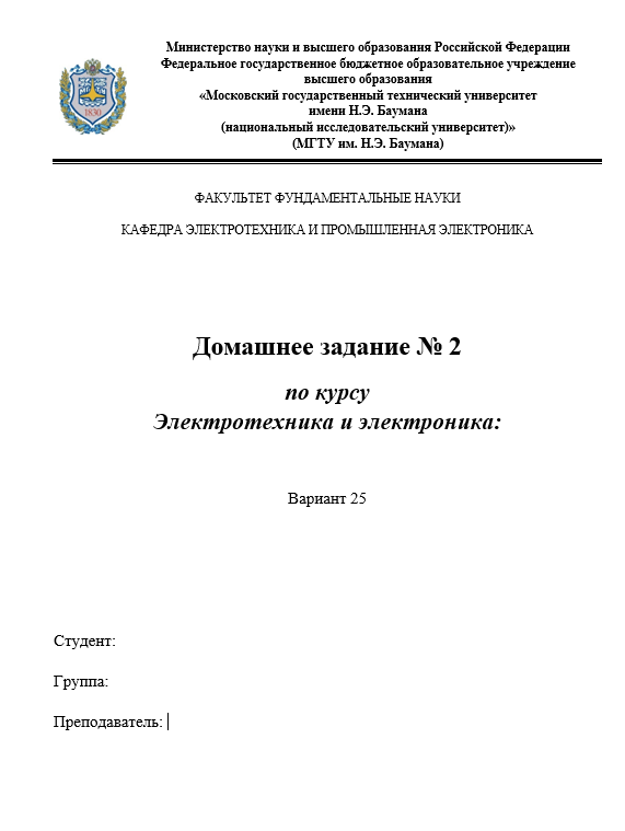 Для студентов МГТУ им. Н.Э.Баумана по предмету ЭлектроникаДЗ 2 - Вариант №25ДЗ 2 - Вариант №25
