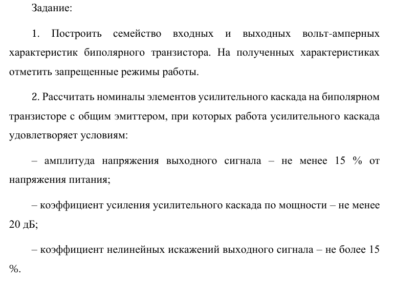 Готовое домашнее задание по курсу электроники кафедра БМТ, на тему: "Моделирование работы усилительного каскада на биполярном транзисторе по схеме с общим эмиттером ".