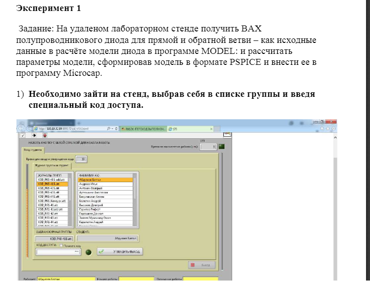 Исследование полупроводникового диода, где получение характеристик диода для расчета его модели средствами сопровождения программ схемотехнического анализа MODEL осуществляется на удаленном стенде.