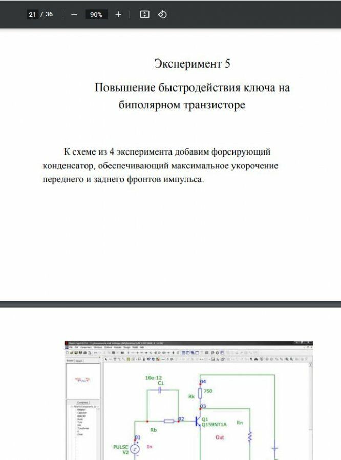 Эксперимент 5 Повышение быстродействия ключа на биполярном транзисторе