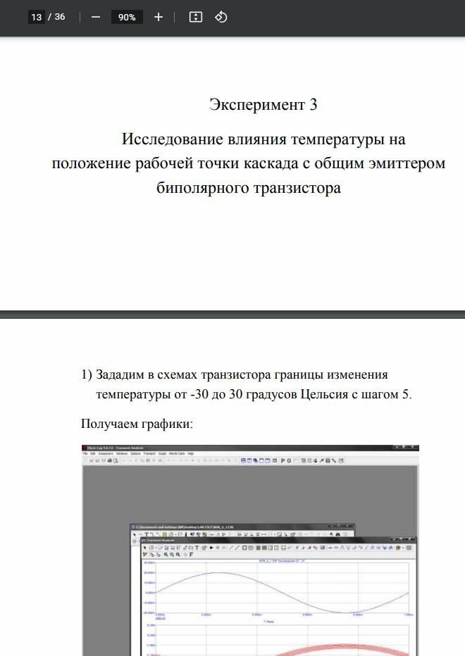 Эксперимент 3 Исследование влияния температуры на положение рабочей точки каскада с общим эмиттером биполярного транзистора