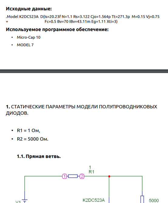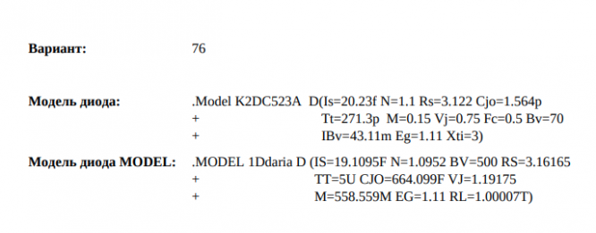 Цель работы: Получение и исследование статических и динамических характеристик диодов и определение по ним параметров модели полупроводниковых диодов, размещения этой модели в базе данных программ схемотехнического анализа.