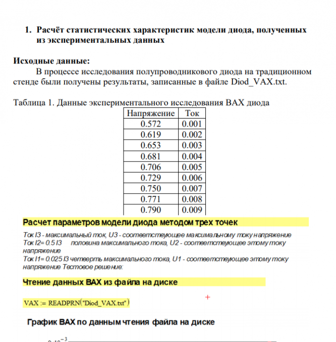 Результат работы: получена статистические характеристики модель диода из экспериментальных данных, результат занесен в программу MICROCAP для дальнейшей обработки.