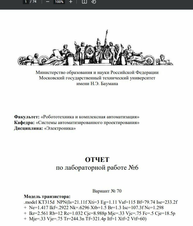 Для студентов МГТУ им. Н.Э.Баумана по предмету ЭлектроникаВариант 70 - Лабораторная работа № 6Вариант 70 - Лабораторная работа № 6