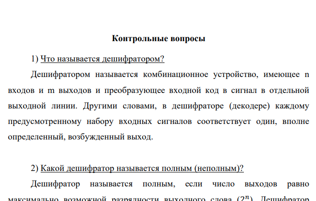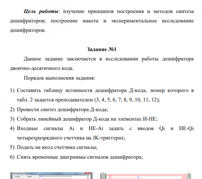 Цель работы: изучение принципов построения и методов синтеза дешифраторов; построение макета и экспериментальное исследование дешифраторов.