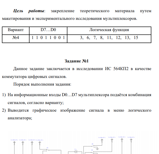 Цель работы: закрепление теоретического материала путем макетирования и экспериментального исследования мультиплексоров.