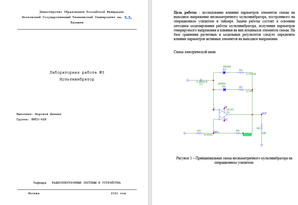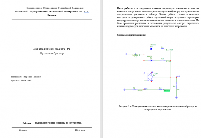 Для студентов МГТУ им. Н.Э.Баумана по предмету ЭлектроникаВариант 8 - ЛР №3 - МультивибраторВариант 8 - ЛР №3 - Мультивибратор