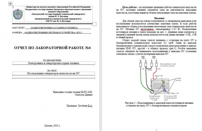 Для студентов МГТУ им. Н.Э.Баумана по предмету ЭлектроникаЛР №4 - Исследование генераторов импульсов на ОУЛР №4 - Исследование генераторов импульсов на ОУ