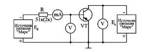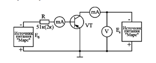 Рисунок 1 - Схема для исследования выходных ВАХ биполярного транзистора