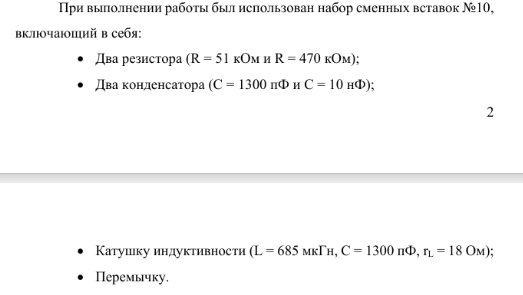 Цель работы — приобретение навыков проведения измерений при помощи приборов, используемых в учебной лаборатории, а также применения различных методов снятия частотных и временных характеристик простейших пассивных цепей и определения параметров цепей и сигналов.