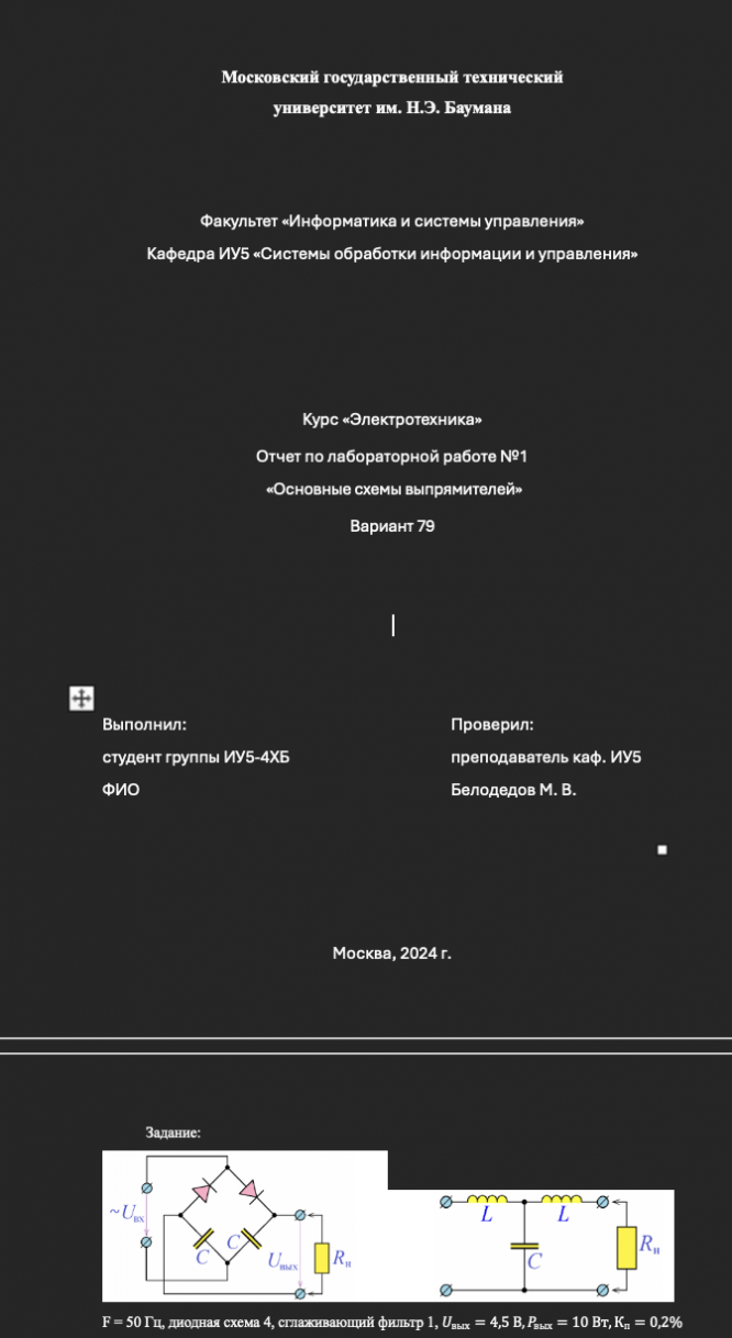 Лабораторная работа 1: Основные схемы выпрямителей. Схема Ларионова вариант 79