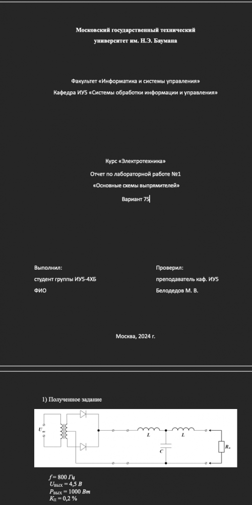 Лабораторная работа 1: Основные схемы выпрямителей. Схема Ларионова вариант 75