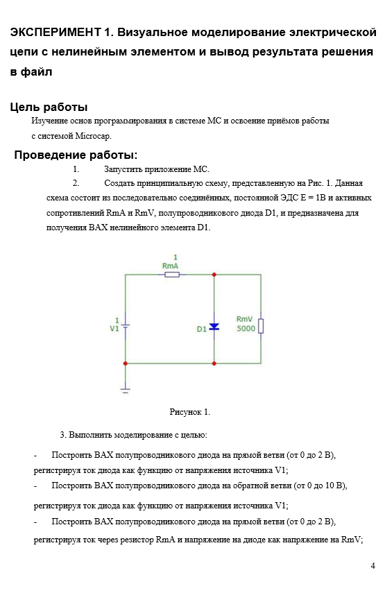- ЭКСПЕРИМЕНТ 1. Визуальное моделирование электрической цепи с нелинейным элементом и вывод результата решения в файл