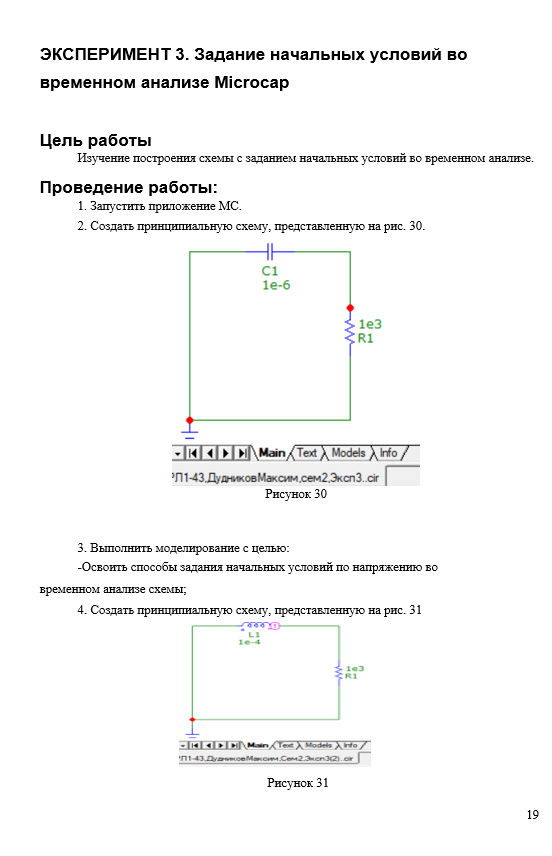 - ЭКСПЕРИМЕНТ 3. Задание начальных условий во временном анализе Microcap