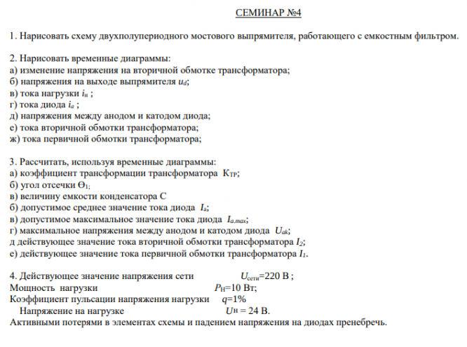 Семинары: КМ-2. Выпрямители. Контрольная работа вариант 4