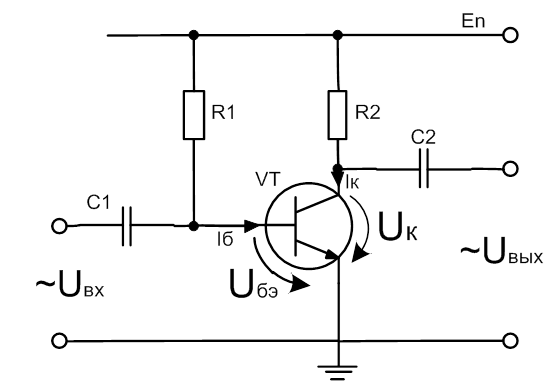 рис. 2а Усилитель на биполярном транзисторе с ОЭ