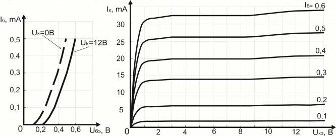 Рис. 2б. входная и выходная ВАХ биполярного транзистора