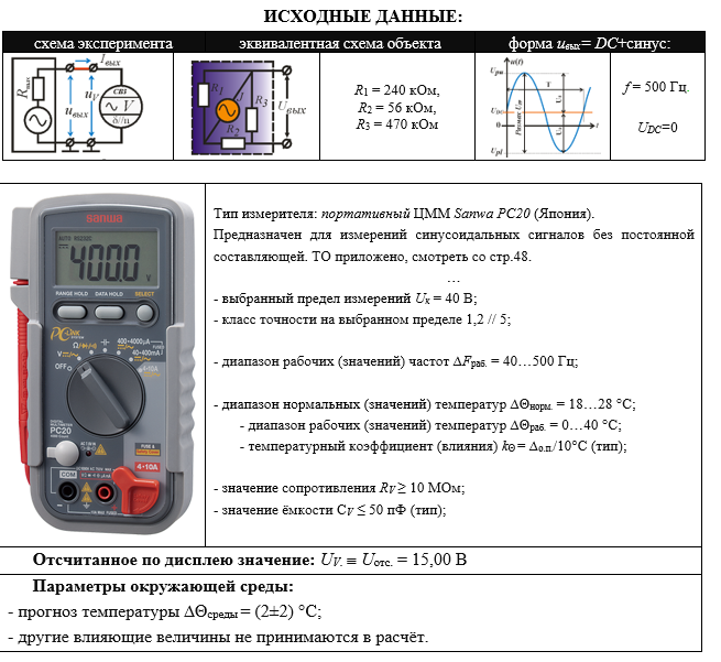 2 Выполнить расчёт погрешностей и записать результат измерения в соответствии с исходными данными ИЗ1 и инструкцией 1.