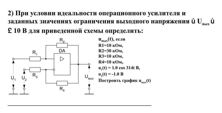 Главная » Учебные материалы » Электронные устройства автоматики » Решения задач » ЮУрГУ » При условии идеальности операционного усилителя и заданных значениях ограничения выходного напряжения