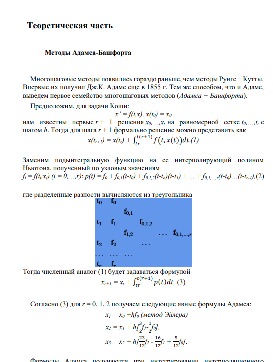 Для студентов МГТУ им. Н.Э.Баумана по предмету Электронные вычислительные машины (ЭВМ)Отчет по учебной практике - ИУ1 - Методы Адамса-МультонаОтчет по учебной практике - ИУ1 - Методы Адамса-Мультона