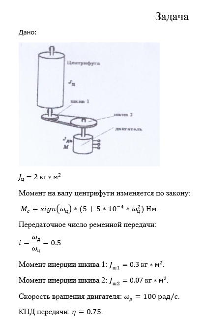 Для студентов СПбПУ Петра Великого по предмету ЭлектроприводМощность приводного двигателя для заданного тахограммой режима работы центрифуги и выбрать двигатель по каталогуМощность приводного двигателя для заданного тахограммой режима работы центрифуги и выбрать двигатель по каталогу