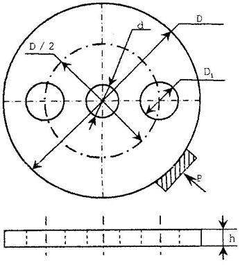 -рассчитать момент инерции стального диска, удельный вес γ=7,8 кг⁄дм3 -рассчитать время торможения диска tт колодкой тормоза при давлении на неё P, считая что, коэффициент трения kтр=0,4. представить графически w(t). D=350 мм,d=40 мм,D1=70 мм h=7