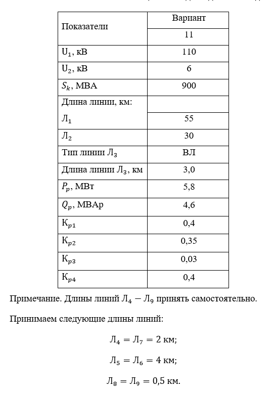 Необходимо определить мощность компенсирующего устройства, необходимую для поддержания на первой секции шип РП–1 значения . (Последняя цифра соответствует последней цифре в номере варианта – 11 Вариант).