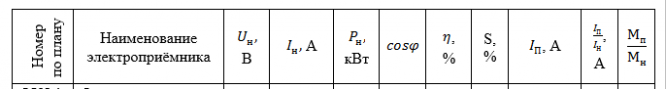 Номер по плану | Наименование электроприёмника | В | А | кВт | | , % | S, % | , А | , A | |