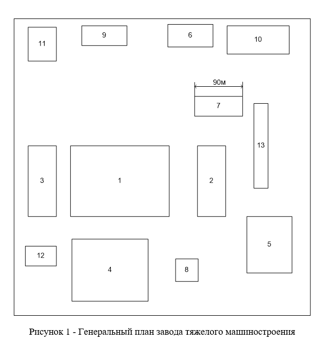1) Генеральный план завода тяжелого машиностроения представлен на рисунке 1.
