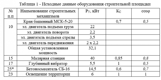 1. Определить расчетную активную, расчетную реактивную и расчетную полную мощности электрооборудования строительного объекта.