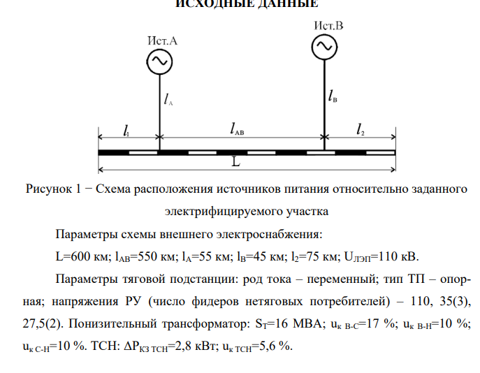 рисунком 1 и заданными длинами электрифицируемого участка;