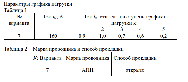 4. Определить расчетные нагрузки по допустимому нагреву проводника при двух указанных допущениях. Уточнить сечение проводника.