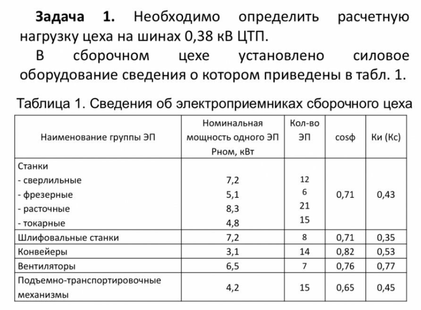 Задача 1.1: Необходимо определить расчетную нагрузку цеха на шинах 0,38 кВ ЦТП.
