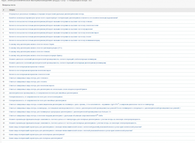 Для студентов ИДДО НИУ «МЭИ» по предмету Электротехническое материаловедение2. Поляризация и потери - тест 100%2. Поляризация и потери - тест 100%