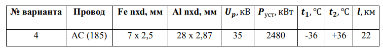 Задание: рассчитать потери в проводах ЛЭП (сталеалюминевые провода); определить, эффективна ли линия, если нет (потери мощности больше 10% от передаваемой мощности); предложить пути снижения потерь в линии (не меняя материалы проводников, мощность, напряжение, температуру).