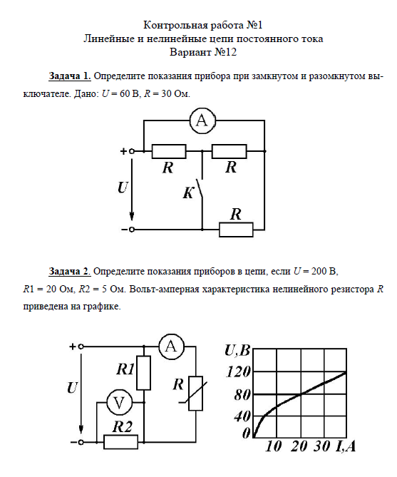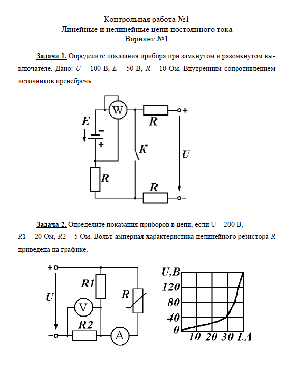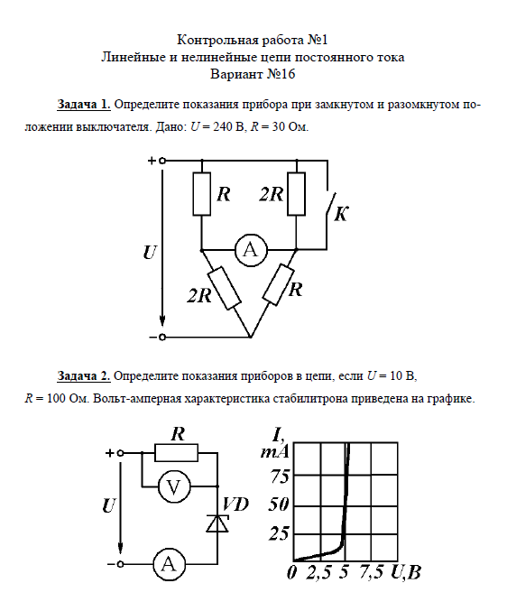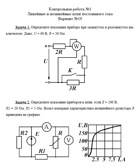 Ответы к контрольной работе: РК №1 "Линейные и нелинейные цепи постоянного тока" (условия всех вариантов, и решение только вариантов №1,12,16,19)
