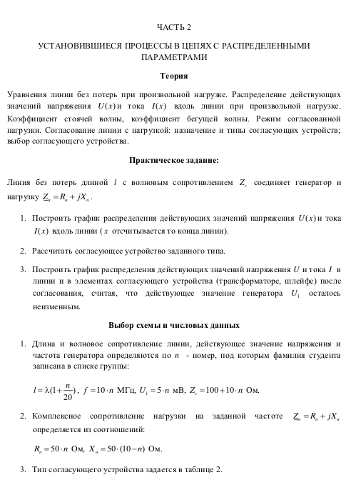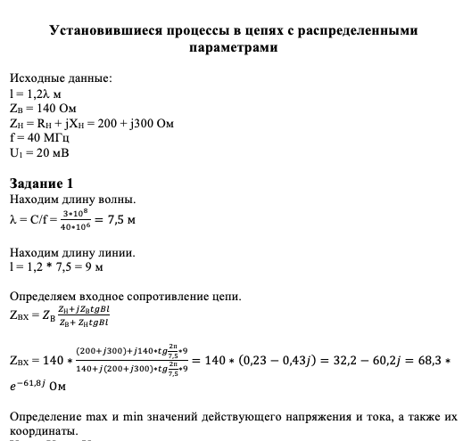 Расчет электрической цепи с распределенными параметрами в установившимся режиме