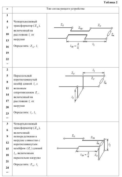 Рассчитать согласующее устройство заданного типа.