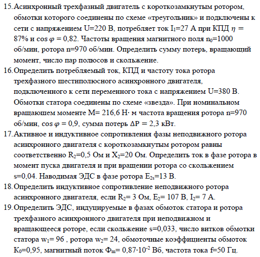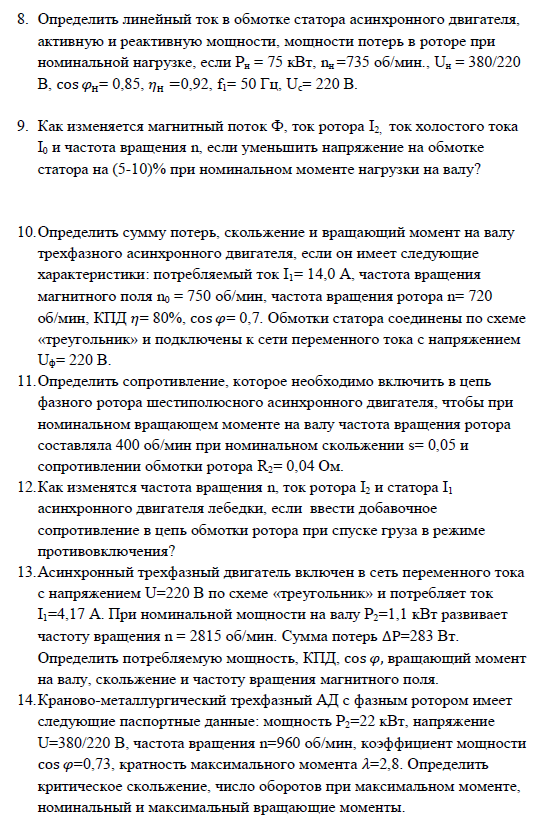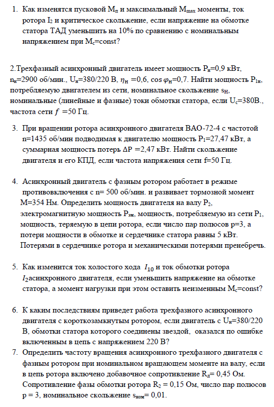 Ответы к контрольной работе 2: Решенные задачи по асинхронным двигателям для РК2.