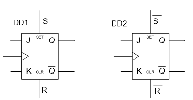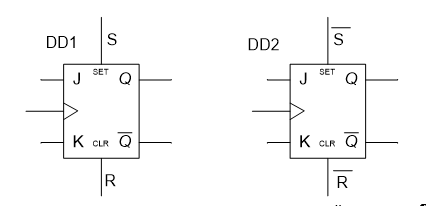 Два триггера с прямыми и инверсными входами предварительной установки.