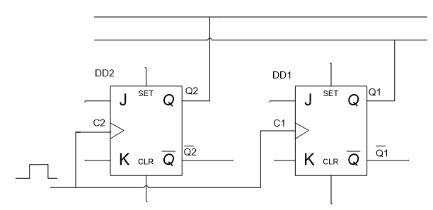 Разработать кнопку начальной установки на основе двух триггеров Шмита так, чтобы триггер DD1 устанавливался в 1, а DD2 в 0