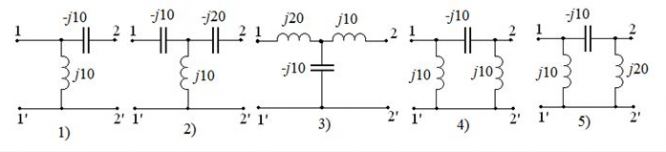 • 4. Для какого из четырехполюсников, схемы которых приведены на рисунке, выполняется условие А11*A22-A12*A21?