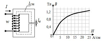 • 5. Средняя длина магнитопровода lст=138 см, ширина воздушного зазора lв=0,1, число витков обмотки w=400. Кривая намагничивания материала магнитопровода приведена на рисунке. Пренебрегая рассеянием, определить ток в обмотке для создания в воздушном зазоре индукция B=1 Тл.