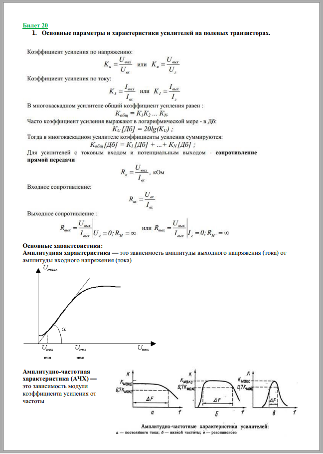 Ответы на Экзаменационные билеты по дисциплину \"Электроника и микроэлектроника\" (24 билета).