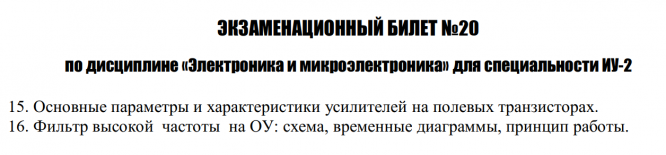 Ответы на Экз. билеты по дисциплине «Электроника и микроэлектроника» для специальности ИУ-2!